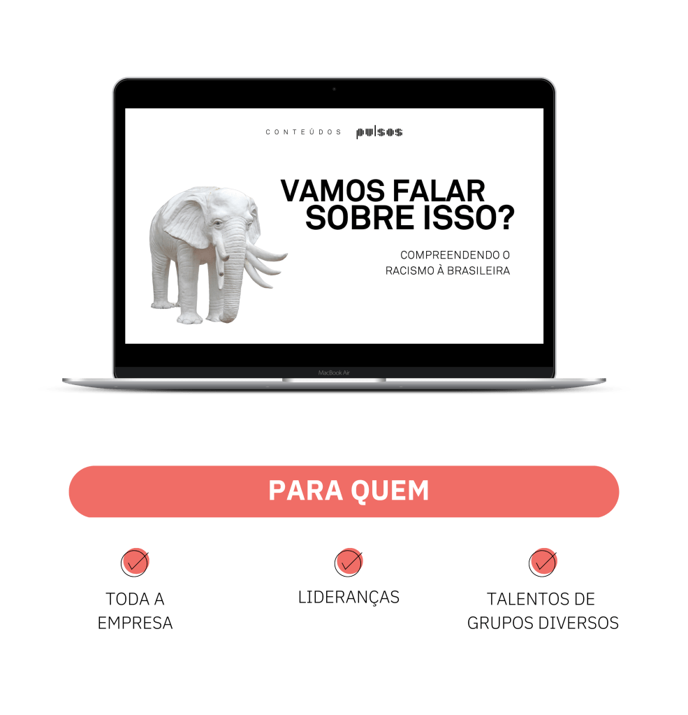 No conteúdo “Vamos Falar Sobre Isso? Compreendendo o Racismo à Brasileira”, participantes entrarão em contato com as origens, os efeitos e as múltiplas manifestações do racismo em nossa sociedade, nosso ambiente de trabalho e nossas vidas individuais, avançando no processo de sua própria consciência racial para transformação social.